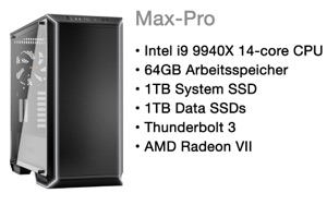 14-Core Prozessor und Radeon VII Grafik. All-round Rechner für maximale Productivity und Rendering.