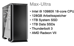 Ultra in jederlei Hinsicht: Wie Render-Pro, jedoch mit maximaler 18-Core CPU und doppeltem RAM.