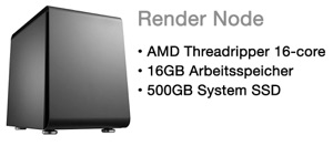 Weitere Details für Model Render Node: • Silent Gehäuse • 550W Netzteil • ASRock Motherboard • Noctua CPU Cooler • Samsung SSD • inklusive • Konfiguration/Installation