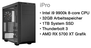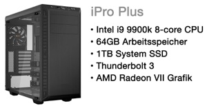 Wie iPro, jedoch mit 64GB RAM und besserer Grafik-Leistung. Ideal für CAD Anwendungen, wie ArchiCAD, Rhinoceros, Vectorworks, AutoCAD...